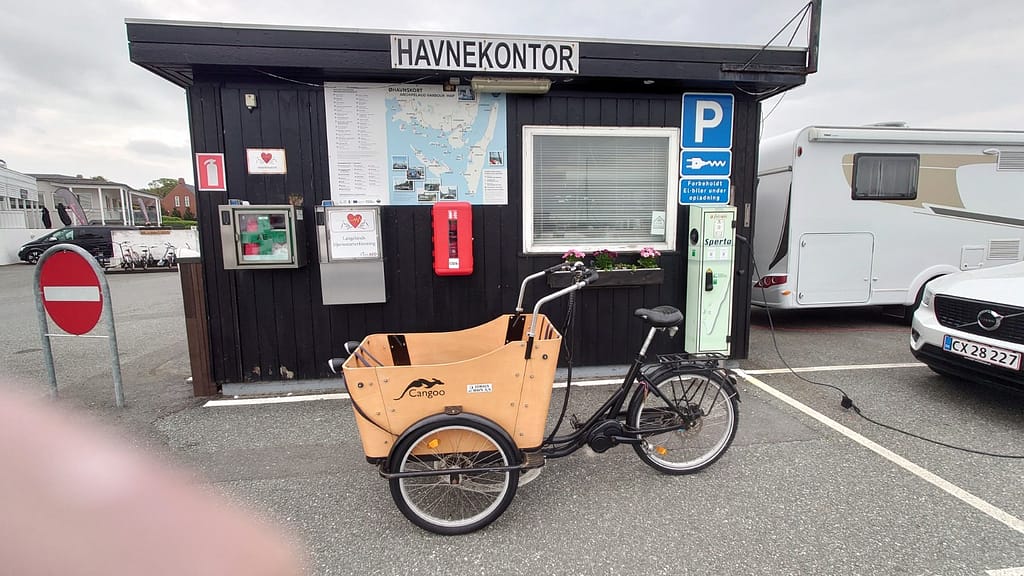 Det er muligt for betalende gæster i havnen, at leje en el-cargo cykel. El-cargo cyklen lejes på havnekontoret og koster kr.: 100,00 pr.dag