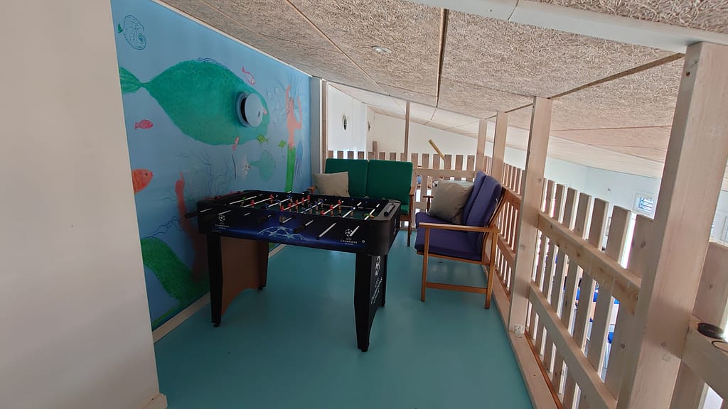 Slap af i sejlerstuen i Banjen, spil air-hockey, lån og læs en bog, spil et spil eller se tv
